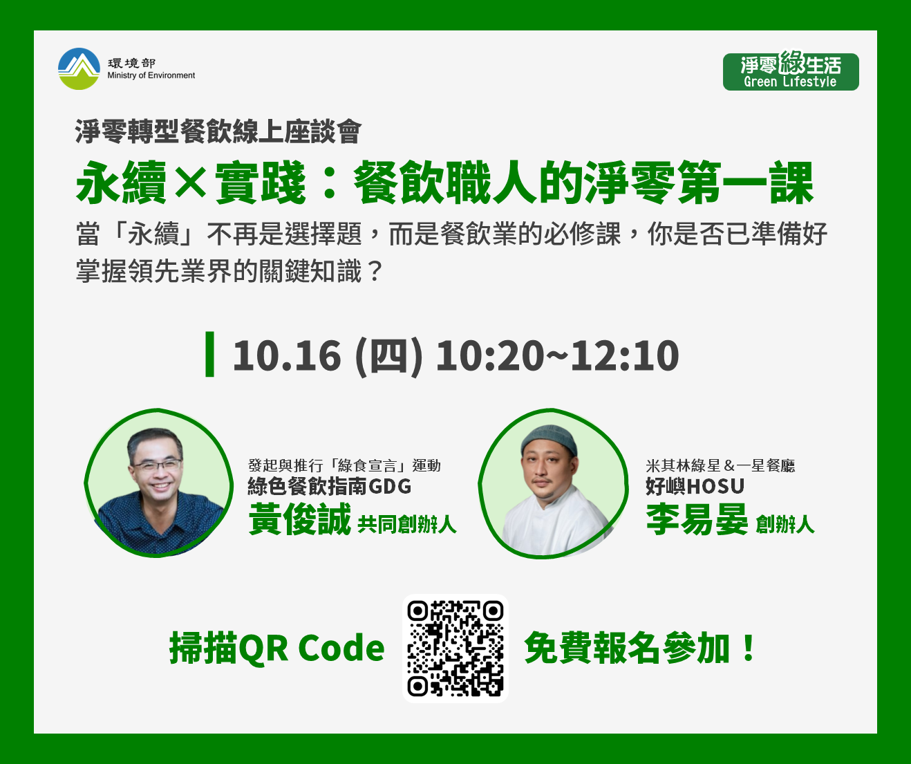 【校務永續發展處】環境部「淨零轉型餐飲線上座談會—永續 × 實踐:餐飲職人的淨零第一課」
